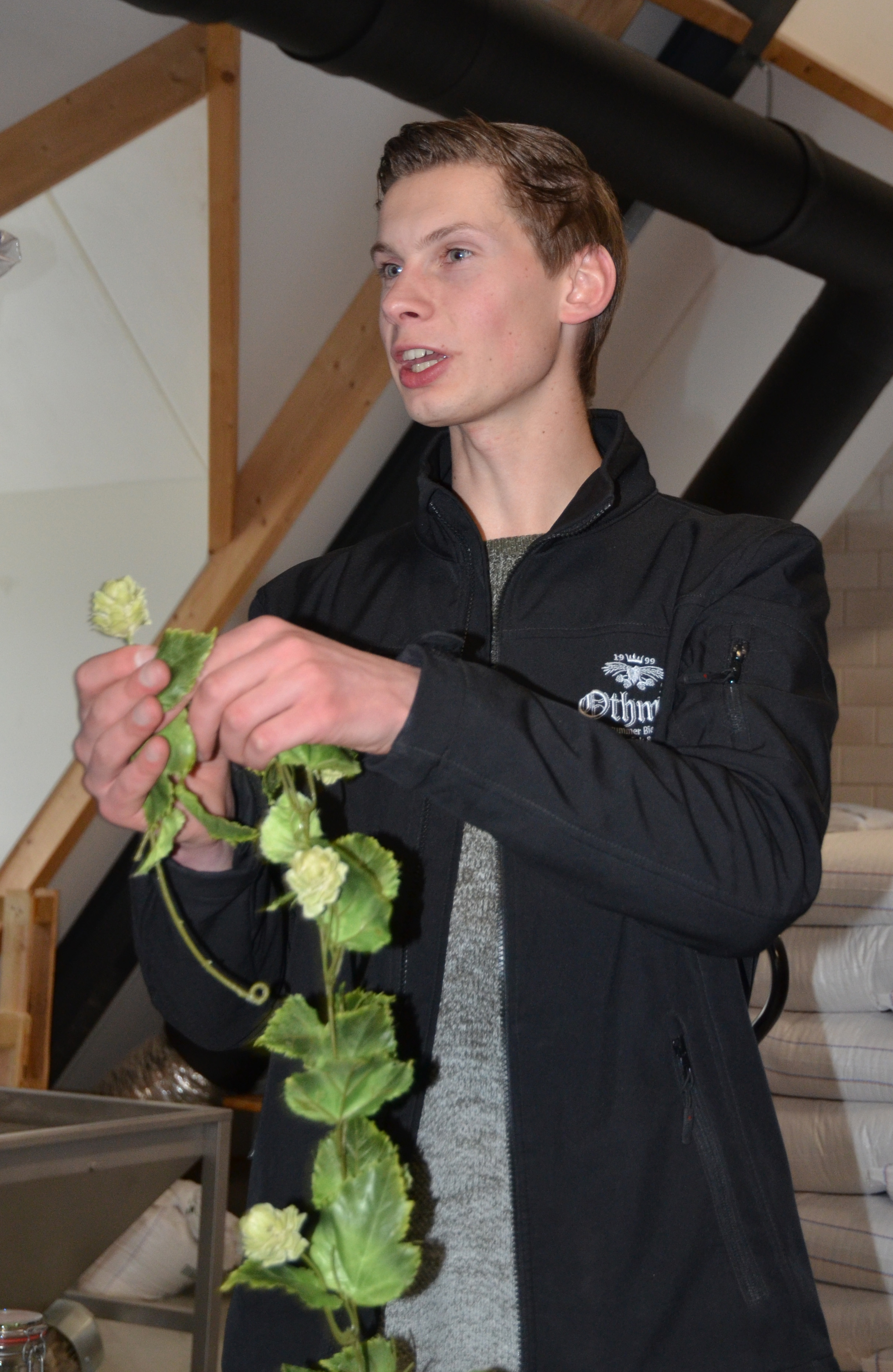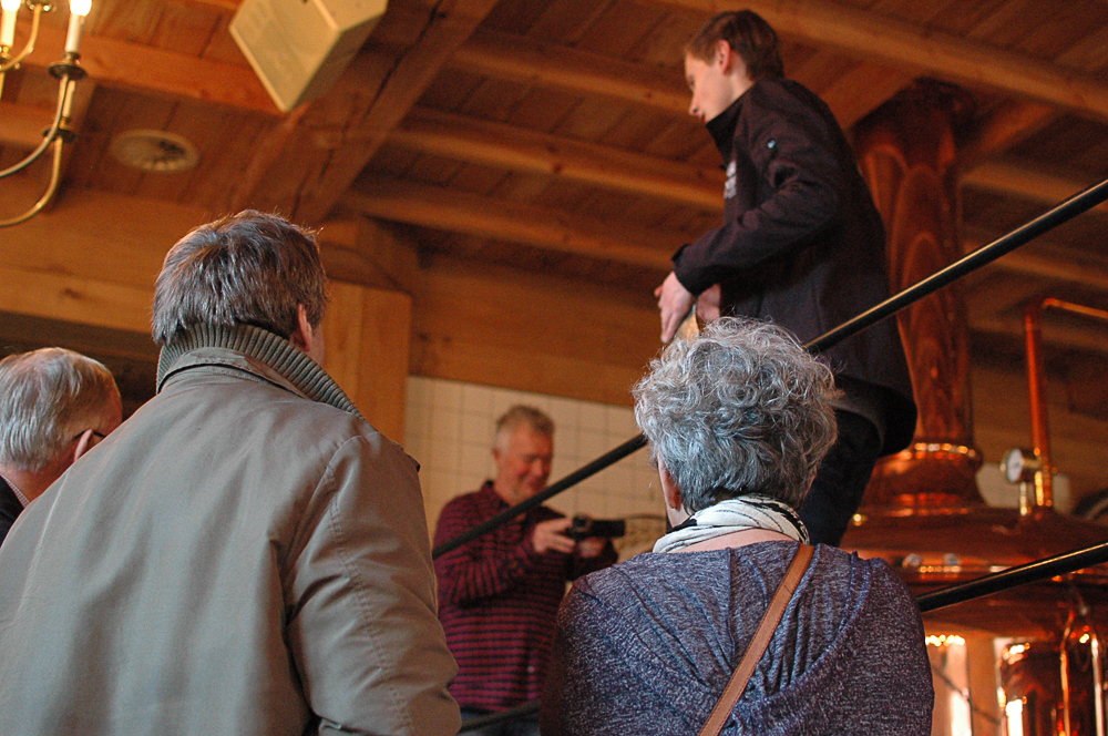 Op zaterdag 18 januari waren we met 13 leden van de Videoclub Borne op bezoek bij de Othmar bierbrouwerij. Een compacte maar prachtige brouwerij aan het Commanderieplein in Ootmarsum. Allereerst togen we naar de zolder waar de vele zakken mout al gereed lagen. Onze excursieleider vertelde ons allereerst uitgebreid over alle 4 de ingredienten voor het maken van bier: water, graan, hop en gist. Ook de oorsprong van de koningsnaam Othmar (vandaar ook Ootmarsum) wordt ons bijgebracht. Vervolgens wordt ons in het restaurant bij de koperen brouwketels het brouwproces met de verschillende kookstappen uitgelegd. Tenslotte wordt aan de overkant de bottelarij toegelicht. Na de smakelijke maaltijd kwamen we al snel tot de conclusie dat we nu zelf wel aan de slag kunnen gaan. Een weer zeer geslaagd uitje van de Videoclub Borne! Zie nog hier voor meer informatie, hierboven een filmpje van ons clublid Joke en hieronder de foto’s van Henk en Tyron.