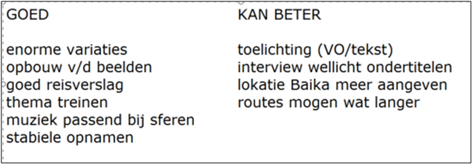 Ook als test ditmaal, twee VCB “Laat Maar Zien” avonden! Helaas de eerste avond door computerstoringen bij Lau wat later begonnen (dat hoort er ook bij!) Daarna verspreid over twee avonden, de 6 films met circa 10 clubleden bekeken en beoordeeld. Lau (als host en moderator) maakte de bekende “Goed/Kan beter” lijstjes met de gedeelde ZOOM whiteboard functie (zie hierboven). Dat ging eigenlijk dan weer prima!