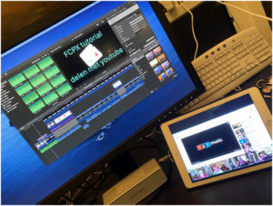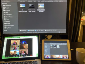 Deze avond stond in het teken van ZOOM omdat we er nog niet eerder mee hadden gewerkt. En het bleek ook niet zo’n probleem te zijn, na enkele aanpassingen in je instellingen ging het prima. Je kunt er vrij gemakkelijk je scherm (zoals je FCP-X montage) mee delen en ook dat werkt prima. Alle deelnemers kunnen dan prima de handelingen van de docent volgen en tegelijk op een tweede scherm nadoen.