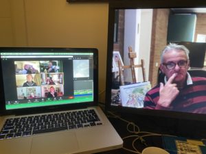 Gelukkig het was zo ver: we zijn weer begonnen, wel via (FaceTime) video registratie maar toch. En ik moet eerlijk zeggen dat het best te doen is (er gaat natuurlijk niets boven persoonlijk contact) en de techniek is wel zo ver dat het er prima uitziet op het scherm. We zijn dan ook zoals gewoonlijk om 20:00 uur begonnen. We startten om ons aan elkaar voor te stellen, want Jan was nieuw. De volgende keer zal Bertie zich ook bij ons aansluiten.